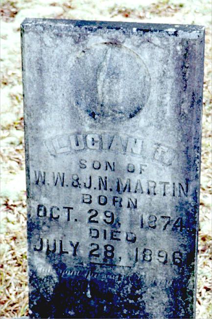 | Martin, Lucian T. | Oct 29, 1874 | July 28, 1896 | "Son of W. W. & J. N. MARTIN" | PC |