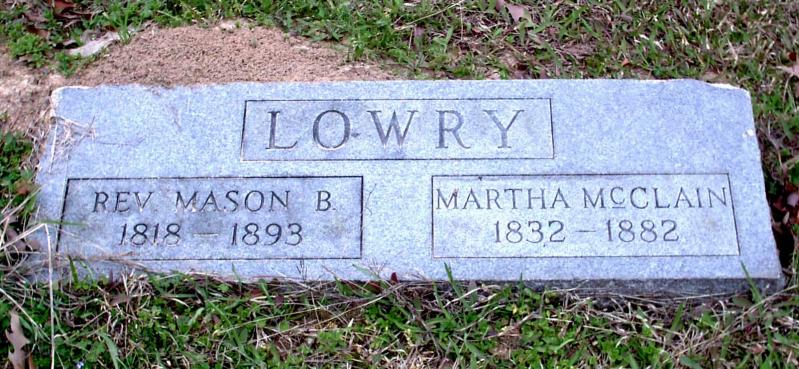| Lowry, Martha McClain - NEW 3-22-2005 | 1832 | 1882 | Double Stone with Rev. Mason B. Lowry | NJ |