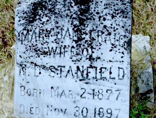 | Stanfield, Mary Jane Craig | Mar 2, 1877 | Nov 30, 1897 | "WIFE OF N. D. STANFIELD" | PC |