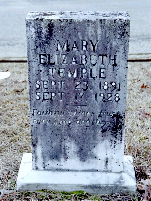 | Temple, Mary Elizabeth | Sep 23, 1891 | Sep 17, 1928 | "Faithful is her trust even unto death" | PC |