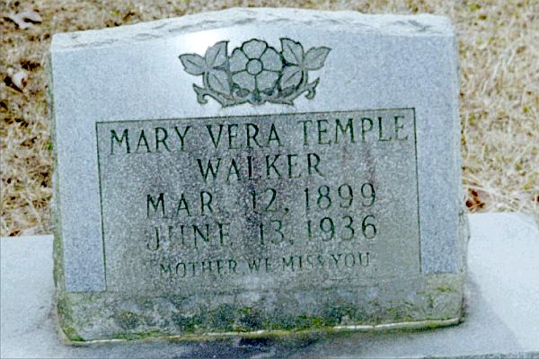 | Walker, Mary Vera Temple | Mar 12, 1899 | Jun 13, 1936 | "MOTHER WE MISS YOU" | PC |