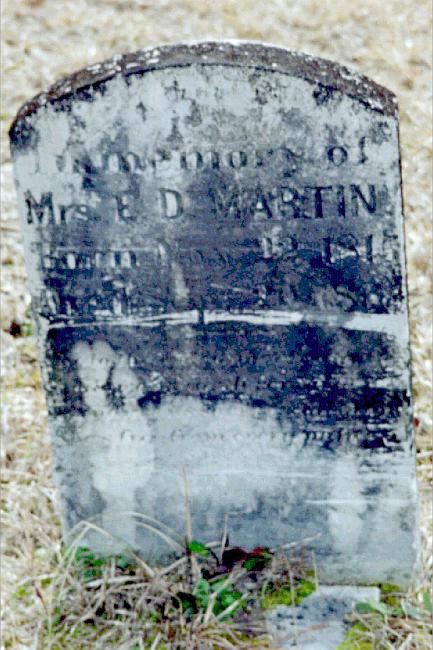 | Martin, Mrs. E. D. | Nov 22, 1815 | Sep 20, 1868 | "In memory of" | PC |