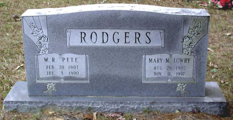 | Rodgers, Mary M. Lowry - NEW 3-22-2005 | Aug 29, 1907 | Nov 11, 1997 | Double Stone with W. R. "Pete" Rodgers | NJ |