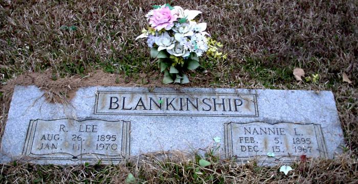 | Blankinship, R. Lee | 8-26-1895 | 1-11,1970 | Double Stone with Nannie L. Blankinship | NJ |