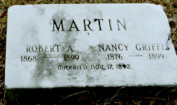 | Martin, Robert A. | 1868 | 1899 | Double Stone with Nancy Griffis Martin "MARIED NOV. 17, 1892" | PC |
