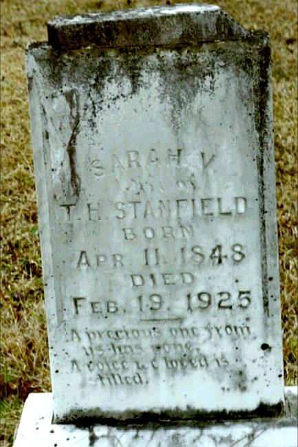 | Stanfield, Sarah V. | Apr 11, 1848 | Feb 19, 1925 | "Wife of T. H. STANFIELD" "A precious one from us has gone, A voice we loved is stilled." | PC & NJ |