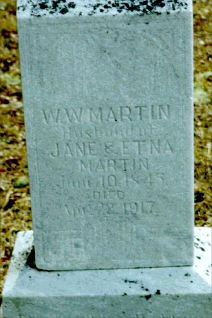 | Martin, W. W. | Jun 10, 1845 | Apr 22, 1917 | "Husband of JANE & ETNA MARTIN" | PC |