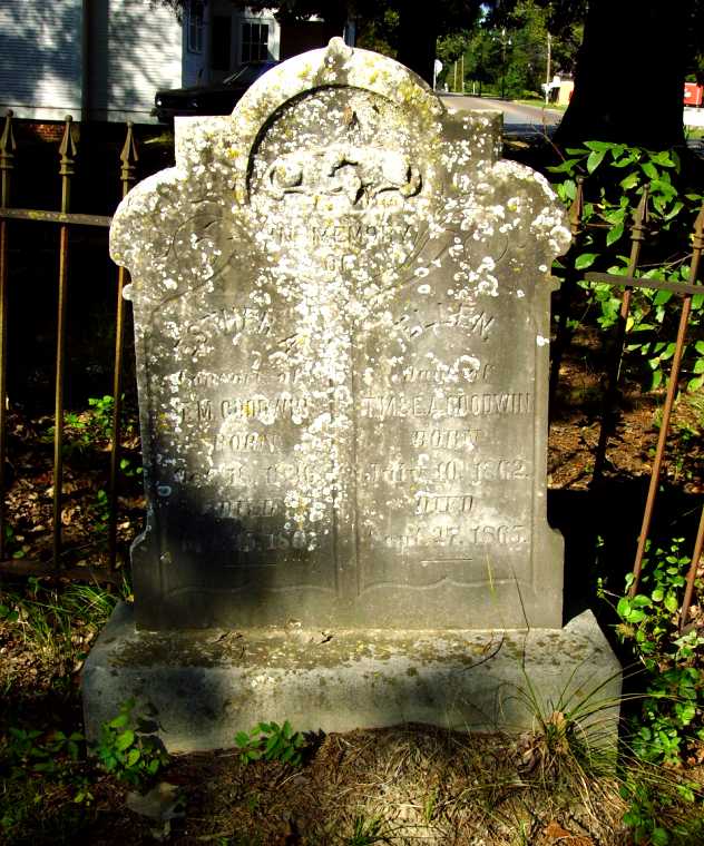 PIC 1 - ESTHER A. GOODWIN; 10-18-1836 - 12-15-1865; CONSORT OF T. M. GOODWIN; PIC 2 - MARY; INSIDE FENCE WITH PIC 1 PIC 3 - NO NAME PIC 4 - LEANN BALDWIN; 7-25-1851; DAU OF M. & NANCY D. BALDWIN; 19 YRS. 8 MOS. PIC 5 - EMILY ALLIS VAN VALKENBURGH; 1-1-1810 - 1888; GRAVESITE LOST PIC 6 - WILLIAM MOORE VAN VALKENBURGH; 1-6-1810 - 9-15-1866; GRAVESITE LOST PIC 7 - JNO. W. RAMSEY; 1801 - 1864 PIC 8 - J. H. B. PIC 9 - ROBERT L. NEELY; 10-18-1834 - 7-6-1877 PIC 10 - DR. W. T. NEELY; 4-12-1832 - 6-6-1862; SACRED TO THE MEMORY OF PIC 11 - DIED SEPT. 1869 PIC 12 - AGED 28 YRS. 2 MOS. 22 DAS.; MAY WE MEET AGAIN PIC 13 - WIFE OF SAMUEL HALLEY; 10-31-1816 - 6-17-1862; AGED 45 YRS. 7 MOS. 16 DAS.; |