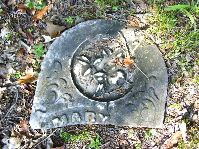 NOTE: "The owner of the house there told me that she was told that the floor of the garage is filled in with tombstones taken from