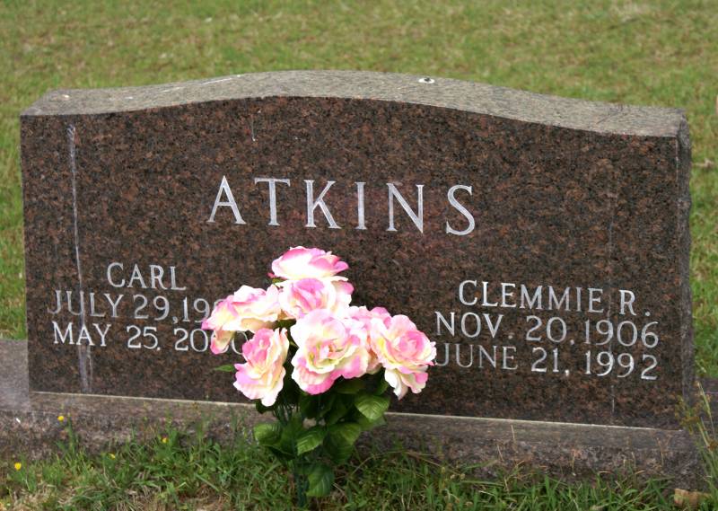 | Atkins, Carl | 29 July 1901 | 25 May 2000 | Double Stone with Clemmie R. Atkins [h/o Clemmie Reddin Atkins who he married May 30, 1926; s/o Daniel L. & Martha Frances "Mattie" Sims Atkins; f/o Vernon Lee, Billie, James Lewis, Donnie Atkins & Martha Ann Atkins Gardner] | BB & DG |