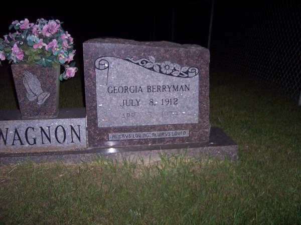 | Wagnon, Georgia Berryman - NEW WITH PHOTO 1-23-2009 | 8 July 1912 | 13 Apr 1979 | Double Stone with Rev. Floyd A. Wagnon "ALWAYS LOVING, ALWAYS LOVED" [w/o Rev. Floyd A. Wagnon] | JG |