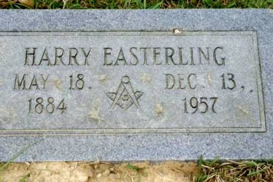 | Easterling, Harry | May 18, 1884 | December 13, 1957 | Masonic Emblem [Full Name; J. Harry Easterling; h/o Bamma Wolfe Easterling, f/o Troy, Sinnie, Ruby, James W. & Louise] | BB & DG |