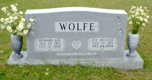 | Wolfe, Ivy Wagnon | November 10, 1921 | December 24, 1994 | Double Stone with Howard Lee Wolfe “MARRIED MAY 4, 1941” | BB & DG |