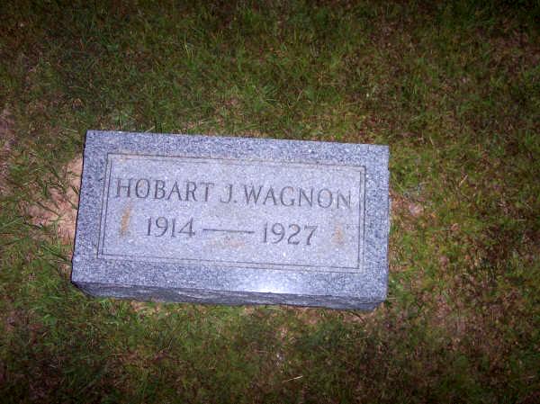 | Wagnon, Hobart J. | 1914 | 1927 | [s/o James Stanford Wagnon & Laura Hanna; Went by "Mac;" twin brother to Hebert Wagnon, known as "Eab." Hobart was killed when run over by a train near the family house.] | BB & JG |
