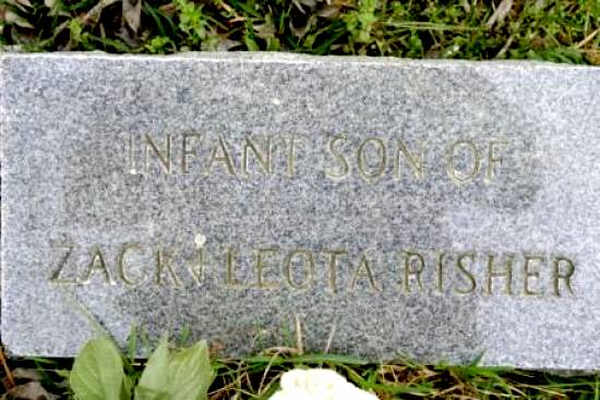 | Risher, Infant | "SON OF ZACK + LEOTA RISHER" | BB & DG | ||