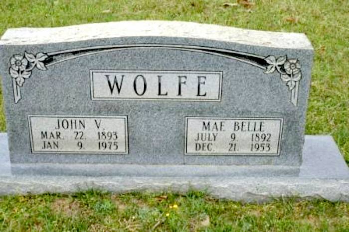 | Wolfe, John V. | March 22, 1893 | January 9, 1975 | Double Stone with Mae Belle Wolfe [Full Name: John Vastine Wolfe; h/o Mae Belle Derryberry; s/o James Hilliard “Jim” &d Sina Cecilia “Aunt Sis” Wagnon Wolfe; f/o James Oder Wolfe; also married to Mable Roebuck] | BB & DG |