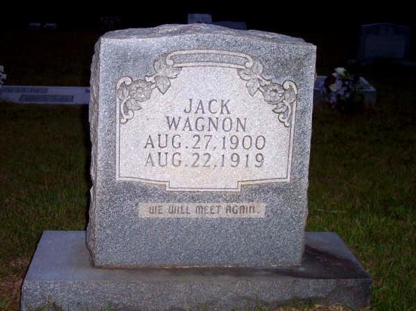 | Wagnon, Jack | Aug. 27, 1900 | Aug. 22, 1919 | "WE WILL MEET AGAIN" [s/o William Thomas Wagnon & Cumi Rilla Richardson] | BB & JG |
