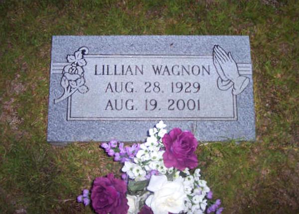 | Wagnon, Lillian | Aug. 28, 1929 | Aug. 19, 2001 | [middle initial "L"; d/o Lewie E. Wagnon & Blanche B. Martindale] | JG |