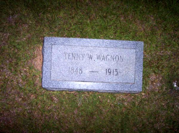 | Wagnon, Tenny W. | 1848 | 1915 | nee Tennessee Whitehead Nabors; d/o Allen J. Nabors & Julia Ann Brown Nabors; w/o P. R. (Peter Roderick) Wagnon; death date 20 Apr 1915; m/o Elizabeth J. Horton, James Stanford, William Thomas, Cora B., John R., Forence S. Henry, Molly Obrion, Carroll D., Joseph Earl, Sr. & 2 infants Wagnon that died at birth or an early age] | BB & JG |