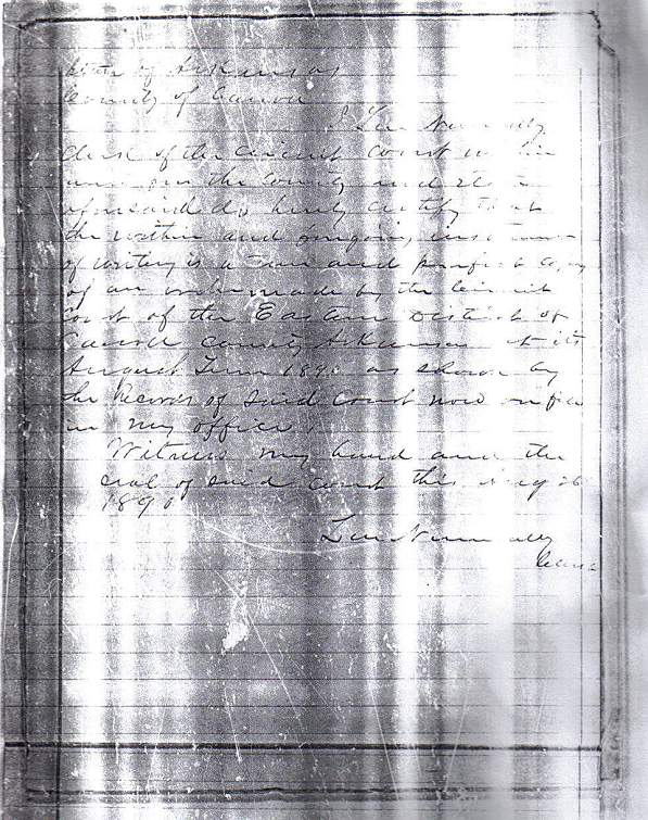 Eastern District of Carroll County Arkansas at its August Term 1890 as