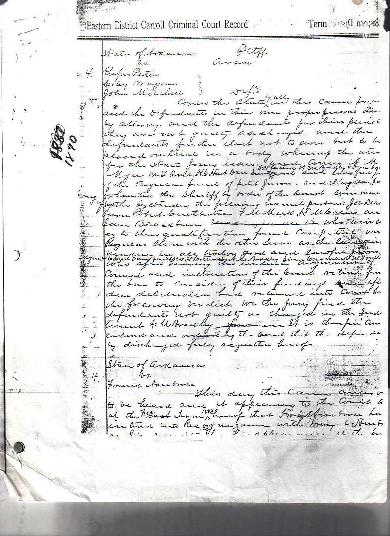 State of Arkansas vs. Rufus Peters, Wm. Ambrose, Frank Ambrose, Cole Wagoner, John Mitchell |