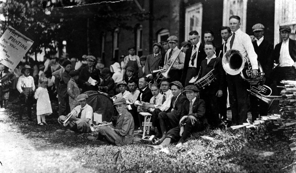 Band presumably in Corning, AR. Sign in picture says “They are fighting for you - what are you doing?” “Bub Arnold”. Dorlene Arnold estate.