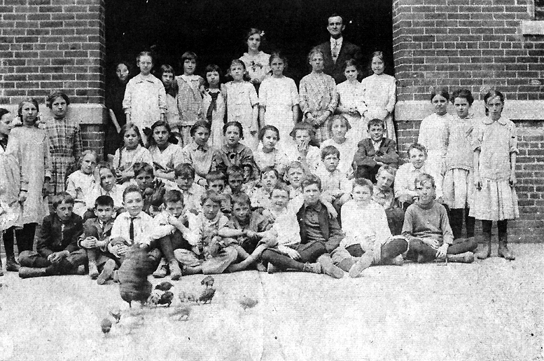 at the right end of second row is Frank McKinney and the lad on Mattie's right