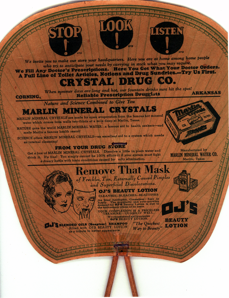 Crystal Drug Co. ad on fan.