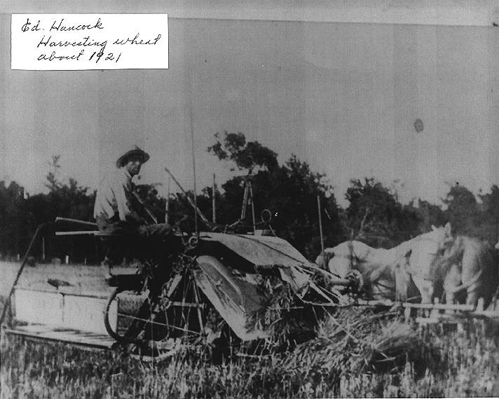 Harvesting wheat near Corning, AR. “Ed Hancock harvesting wheat about 1921”. (Louis Ahrent).