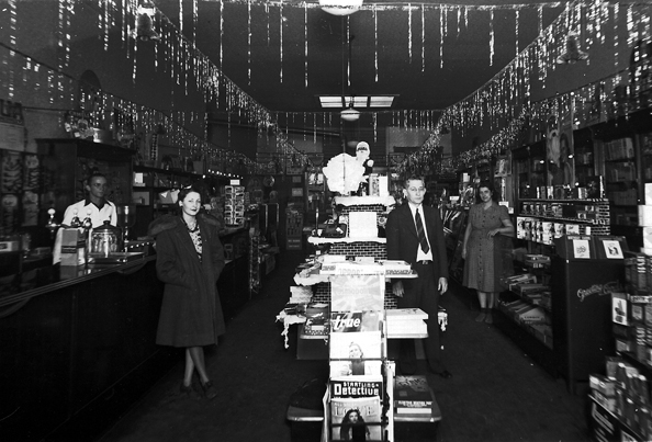 E. Moore). “Fitzgerald Drug Store, Christmas 1948”.