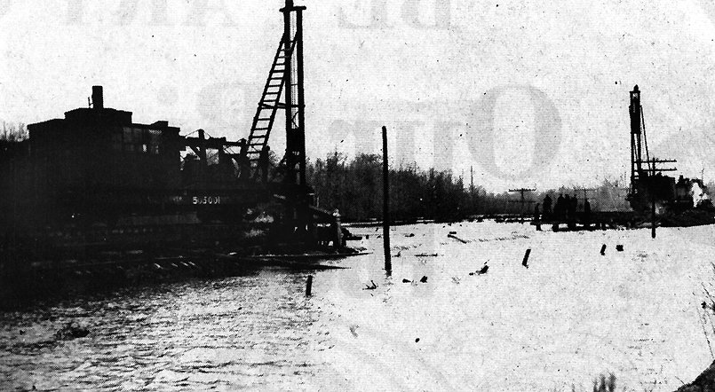 "High water on the Black River was an annual event in the late Winter of any year. However rains of 1918 had been heavier than usual and the February thaw with more rain brought high waters that even an old timer could not recollect seeing. Corningites had their usual afternoon past-time of checking the rise of the back water and it was prophesized that the curve North of the Corning Lake trestle (trussel if you are a native Arkansawyer) would be washed out... Sandbagging delayed the inundation for a short time but the rise topped all barriers and with one mighty surge that put spectators to hopping for dry land, the waters conquered and Corning was to be isolated for several days. Postmaster McKinney brought in the daily mail via motorboat from Knobel and business halted while everyone enjoyed the aquacade free. Anxious to get the mail line to Texas in operation, the Iron Mountain brought in two pile drivers and the breach was closed by driving piling from either end. The following Summer the road bed was raised high enough to avert such washouts in the future." (Clay County Courier)