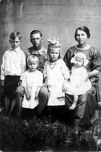 Hiram Nelson with his wife, Lelia Mae Wilson Nelson. The children are Melvin, Sadie Marie, Tina Juanita, Winta Virginia (on Lelia's lap).