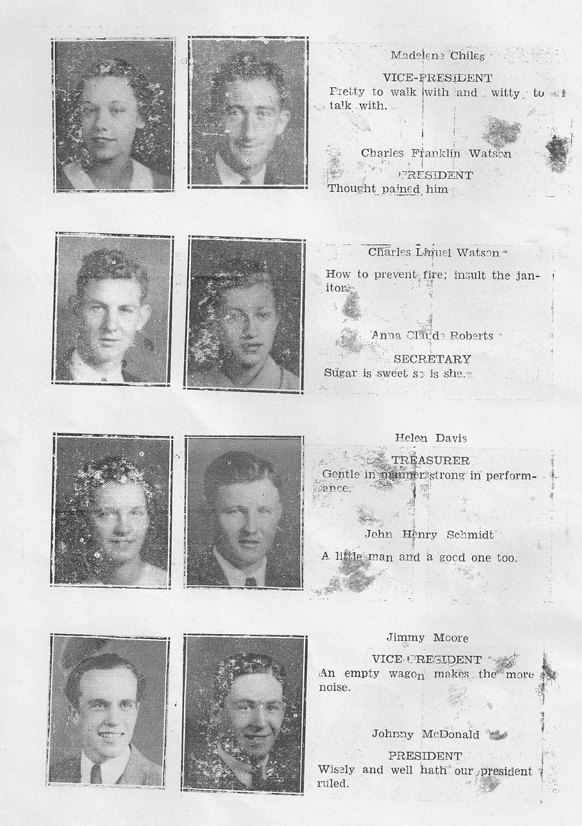 Madelene Chiles, Charles Franklin Watson, Charles Linuel Watson, Anna Claude Roberts, Helen Davis, John Henry Schmidt, Jimmy Moore, Johnny McDonald
