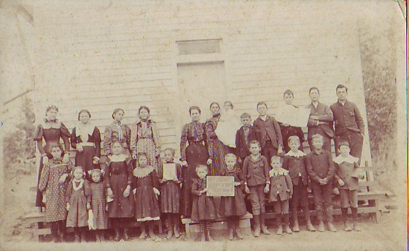 Submitted by Jennifer Miles, gg-granddaughter of teacher Minnie Rodenback (back row center, not holding the baby)