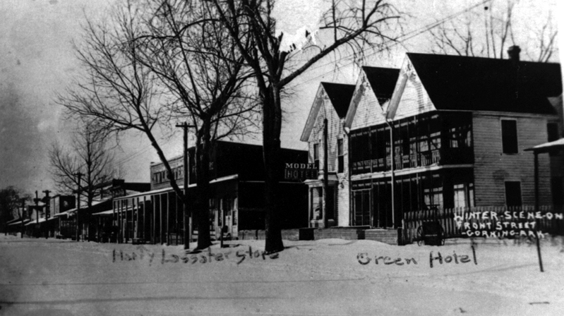 “Harry Lasater Store, Green Hotel, St. James Hotel, Corning”.