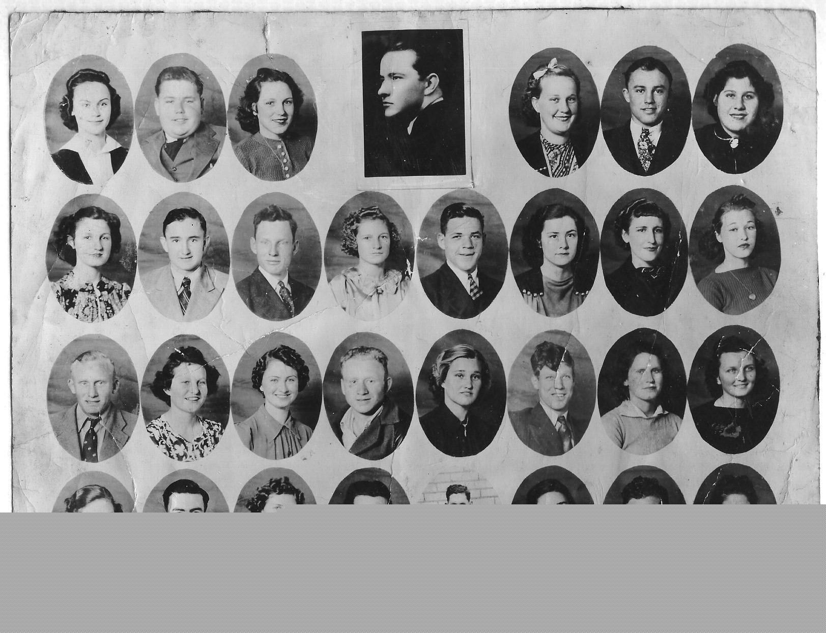 Top Row, L to R: Mary Elizabeth Tolson, Hershel Lockridge, Juanita Pierson, Supt. Earl Fisher, Gwendolyn Trucks, George Tolson, Susie Mae Wilson 2nd Row, L to R: Dorothy Ryburn, Jack England, Harlon Harper, Hazel Wall, Tommy Halsell, Gussie Mae Speaks, Alva Rodgers, Pauline Glover 3rd Row, L to R: Lewis Ballew, Maxine Hyatt, Millie Cox, W.H. Cameron, Faye Holderfield, Raymond Phillips, Mattie Lou Parker, Mary McClendon 4th Row, L to R: Catherine Elizabeth Cathey, Wylie May, Zelphia Mae Keith, Maysel Lee Jonhston, Orion E. Gates, Arlene Worsham, Quinton Bell, Bernice Pierson