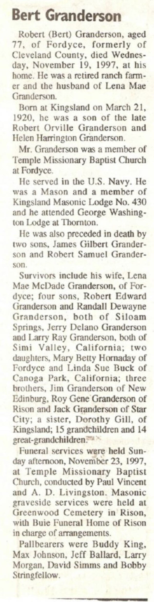 - Granderson, Robert "Bert"