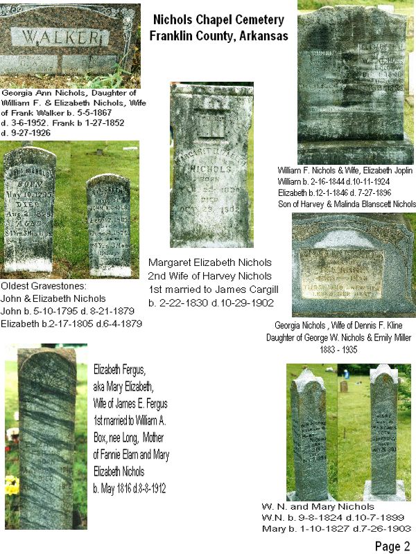 This is A different Nichols Cemetery than you have. It is North of Ozark, East of Anderson Farm and South of turkey houses on the (HWY 352 – The old Wire Road) East of Hwy 23.