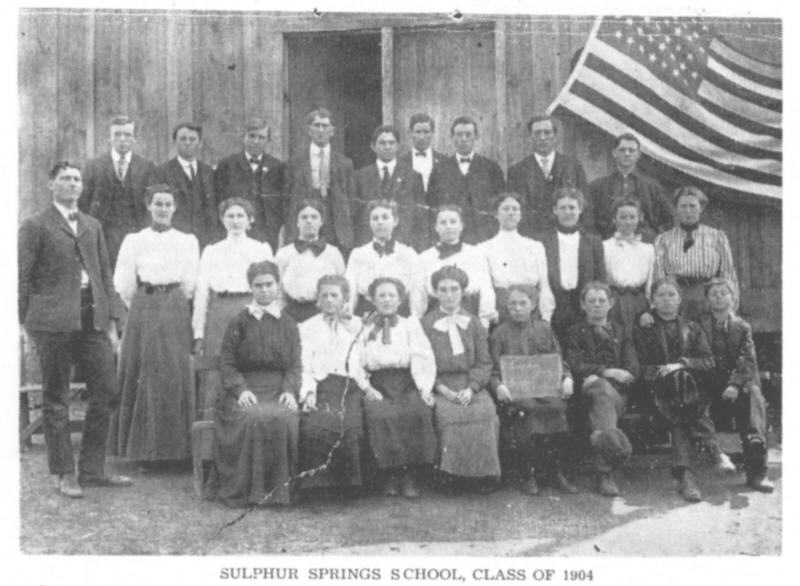 The district has been swallowed up by consolidation, but the school house, renamed the Sulphur Springs School House, because of a large spring nearby that furnishes an everlasting water supply, remains as a community gathering place.