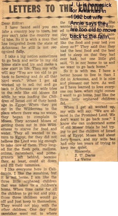(J.U. is homesick for Arkansas in