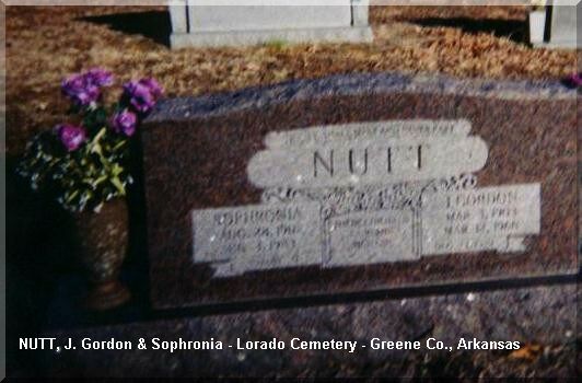 Double stone for Sophronia Nutt and J. Gordon Nutt Photo taken by Clarissa Brown Submitted by Nancy Gruber Return to Greene County, Arkansas Index Page