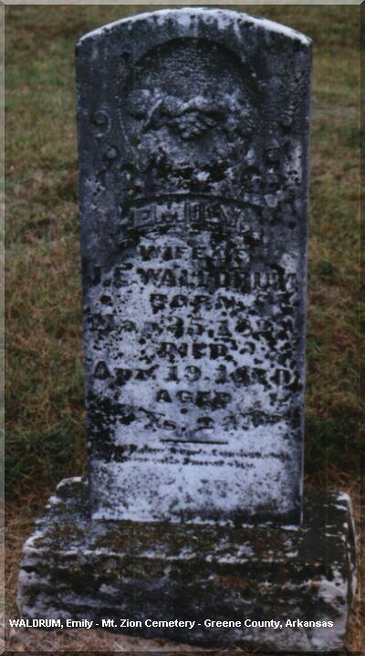 Emily Waldrum Wife of James E. Waldrum Mother of William Waldrum Nimrod Waldrum Contributed by Nancy Gruber - grubern@aol.com