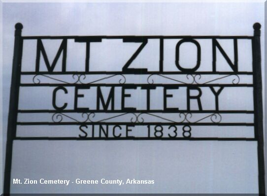 Greene County, Arkansas Mt. Zion Cemetery Sign