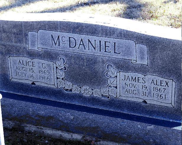 Headstone of Alice Gramling McDaniel and her husband James Alex McDaniel. They were my great-grandparents. Their house and barn are still in use in the Wood's Chapel area.