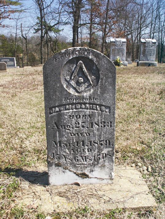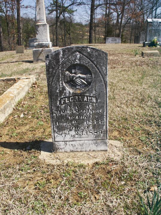 James McDaniel and his second wife Flora Ann 'Morris' Courtney McDaniel. James was the son of John McDaniel (son of Stacy) and his first wife, Sally 'Hollingsworth' McKinney McDaniel. James prospered in Greene County as a farmer and businessman. He also owned and operated one of the first cotton gins in Greene County. NOTE: James McDaniel's wife, Flora Ann 'Morris' Courtney McDaniel was the sister of James McDaniel's father's third wife, Emily C. 'Morris' Robards McDaniel. I wonder if the kids called her Aunt Grandma? |