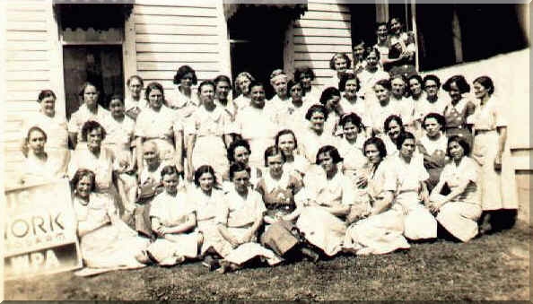 Gr.mother 2nd from the right front row: Her name was Ines Maple, Howard, Bush, Risinger. WPA days they did cooking, laundry, house cleaning.