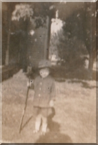 Picture of small boy dressed like he is going to war. It has marking on back that looks like a post mark. It says "Printed Aug 16, 1918". By McHaney Camera Supply Co. Paragould, Arkansas. |