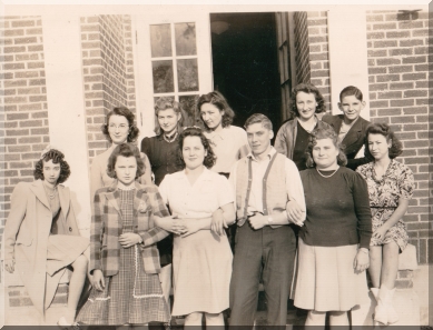 Catherine Thompson Van Marion. She is standing in 2nd row to the right of the seated girl with the coat on.