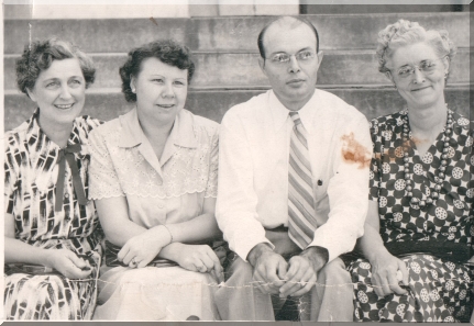 Cora Rogers Thompson Scott, seated next to the man. Maybe steps of the First Baptist Church.