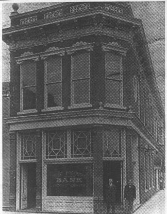Early days of First National Bank, with Lawyers offices upstairs. The photo is undated but the bank is on the original 1889 site.